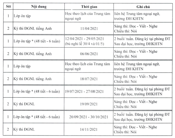 Thông báo kế hoạch tổ chức các kỳ thi đánh giá năng lực tiếng Anh dành cho học viên cao học năm 2021