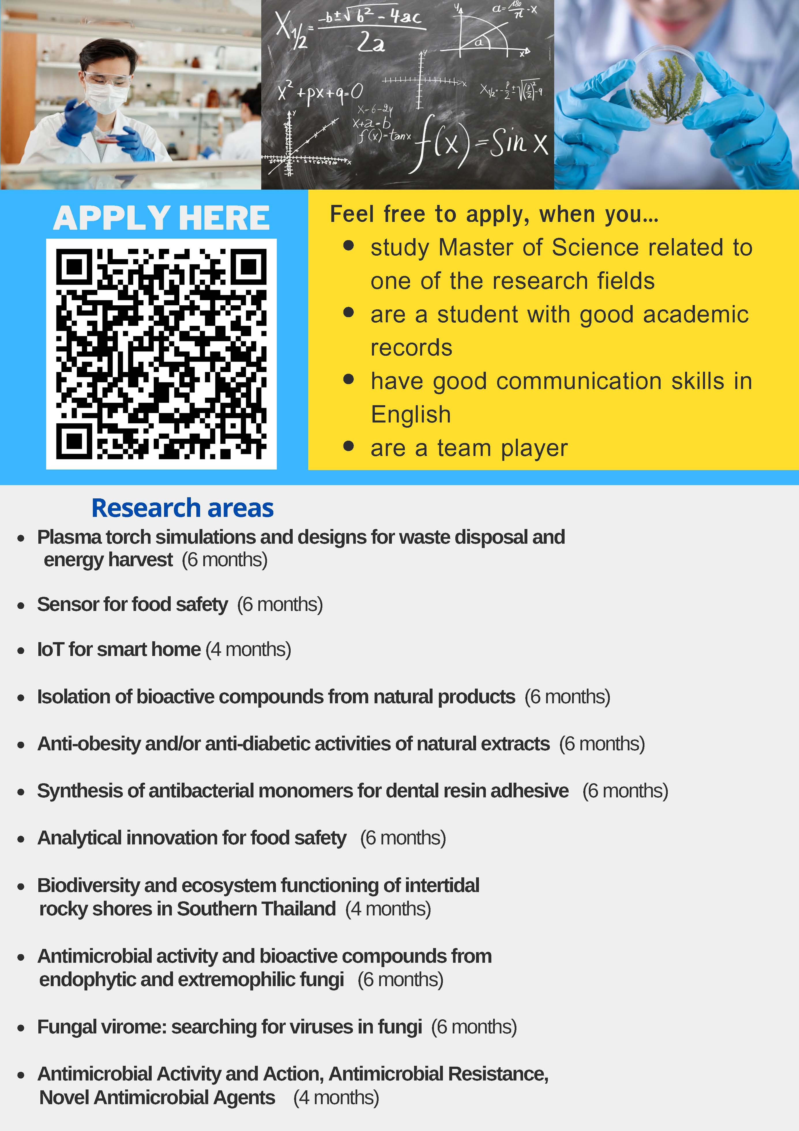 Chương trình thực tập dành cho sinh viên Thạc sĩ Khoa học (Master of Science) của Đại học Hoàng tử Songkla (PSU), Thái Lan.