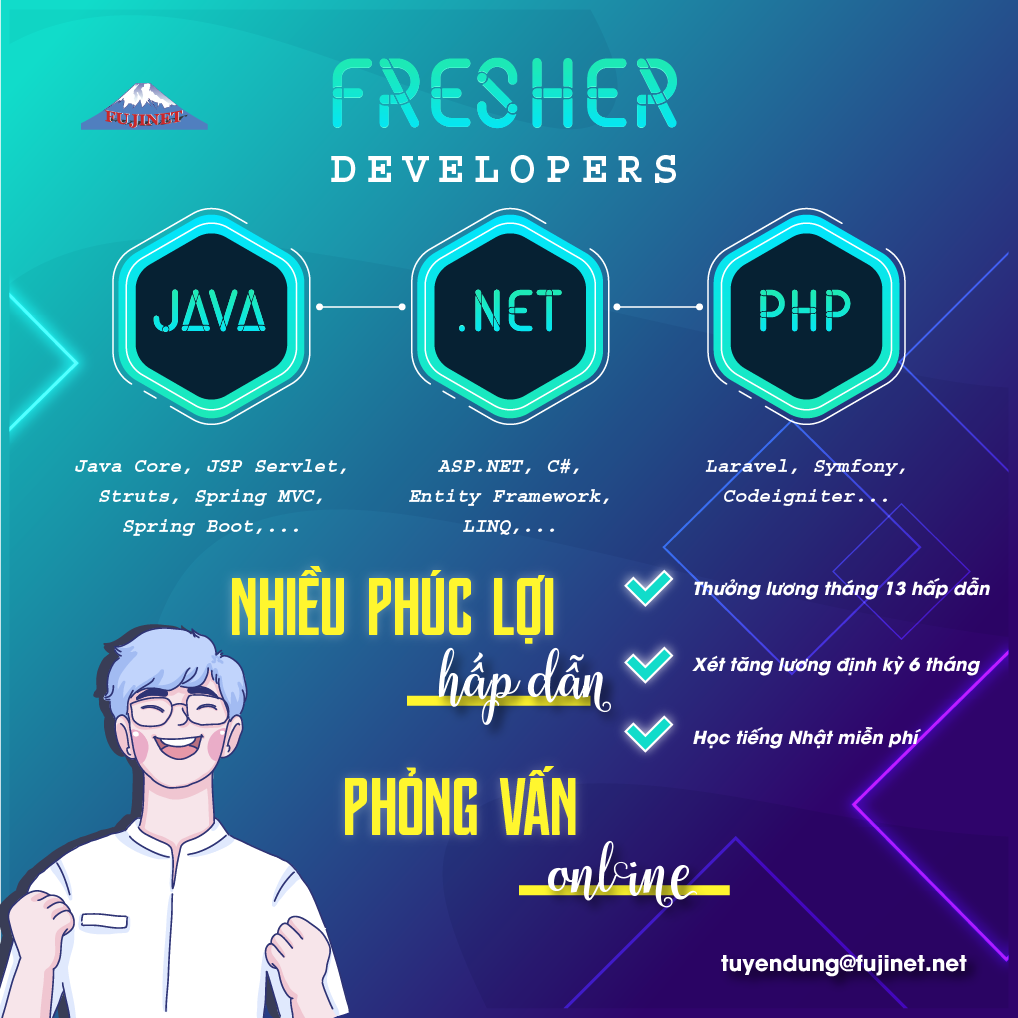 [FUJINET] Tuyển dụng JAVA/.NET /PHP Fresher Developers (Web/ Winform)