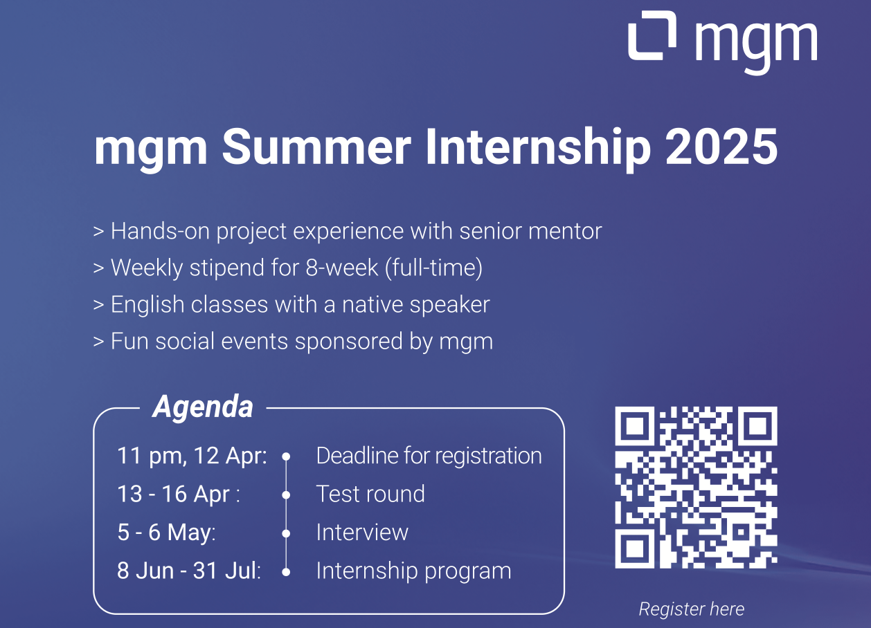 - Thời gian thực tập: thứ 2- thứ 6, trong 2 tháng từ ngày 8/6 – 31/7