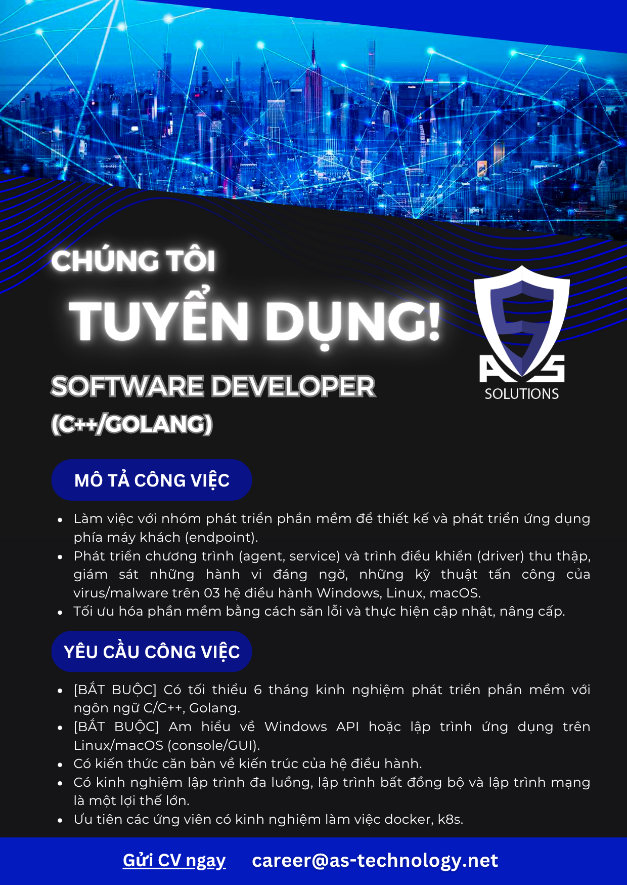 Là một một ty trẻ và đầy tham vọng, tọa lạc tai trung tâm Thành phố Hồ Chí Minh. Sứ mệnh của công ty là tạo ra những giải pháp, dịch vụ nhằm giúp khách hàng bảo vệ tài nguyên số trước các cuộc tấn công mạng; tạo ra sự an tâm cao nhất để khách hàng phát triển hoạt động kinh doanh. Chúng tôi đã dành hàng nghìn giờ để tạo ra những giải pháp an ninh thông tin mạnh mẽ, linh hoạt và an toàn.