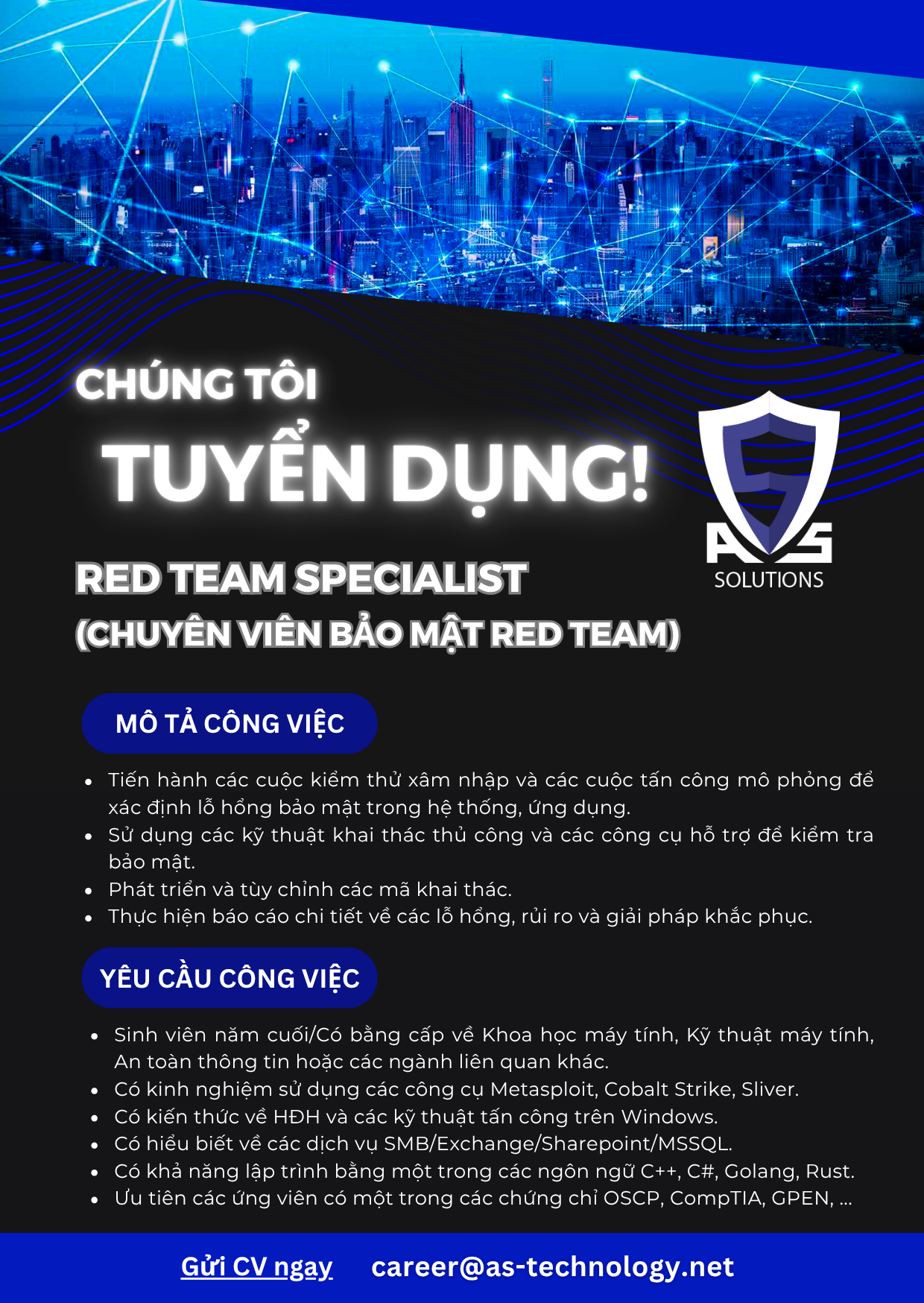 1. Red Team Specialist - Chuyên viên bảo mật Red Team.