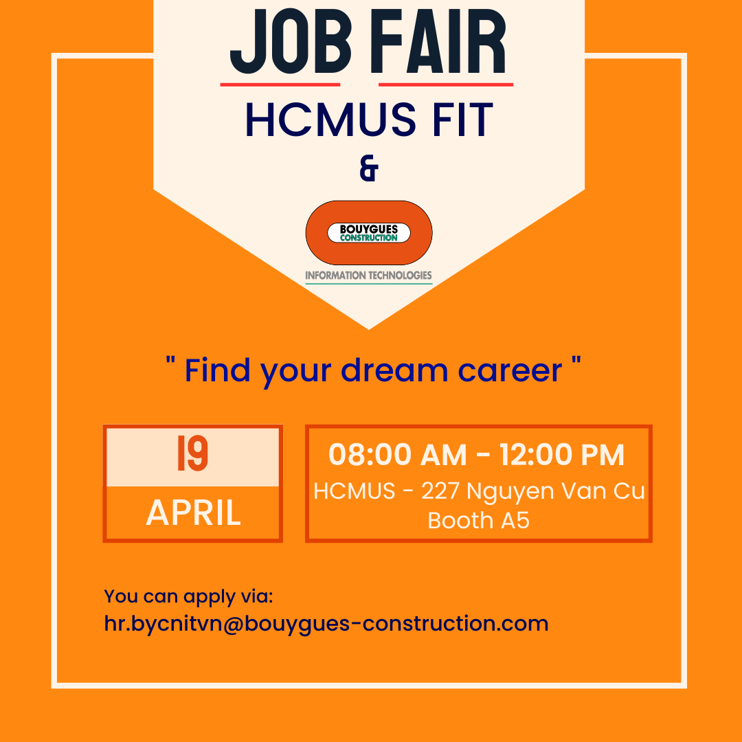 👉 Hãy ghé Bouygues Construction IT Vietnam Career Booth tại Job Fair HCMUS cuối tuần này!
