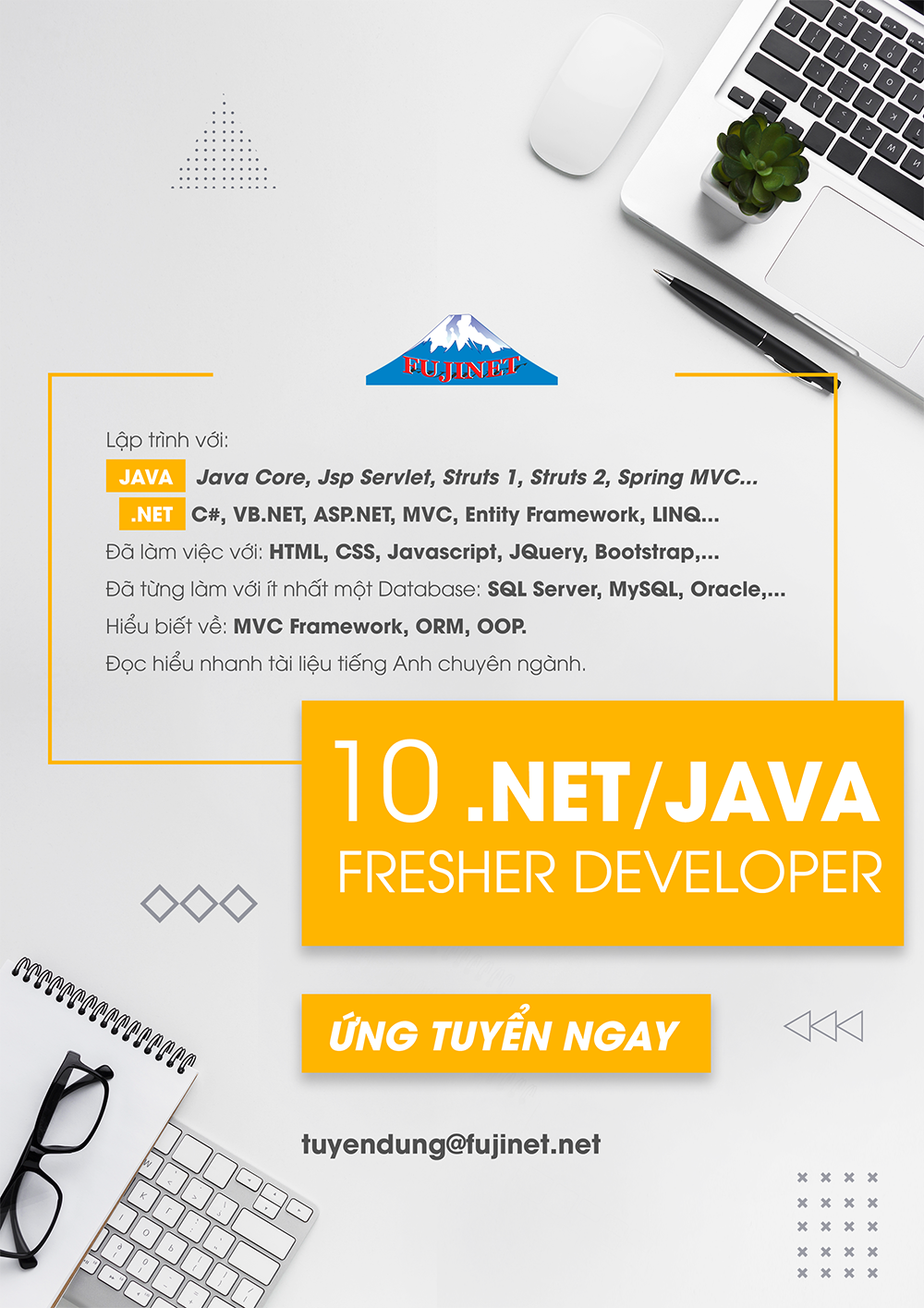 2. Hoặc Gởi CV có kèm ảnh qua email: tuyendung@fujinet.net