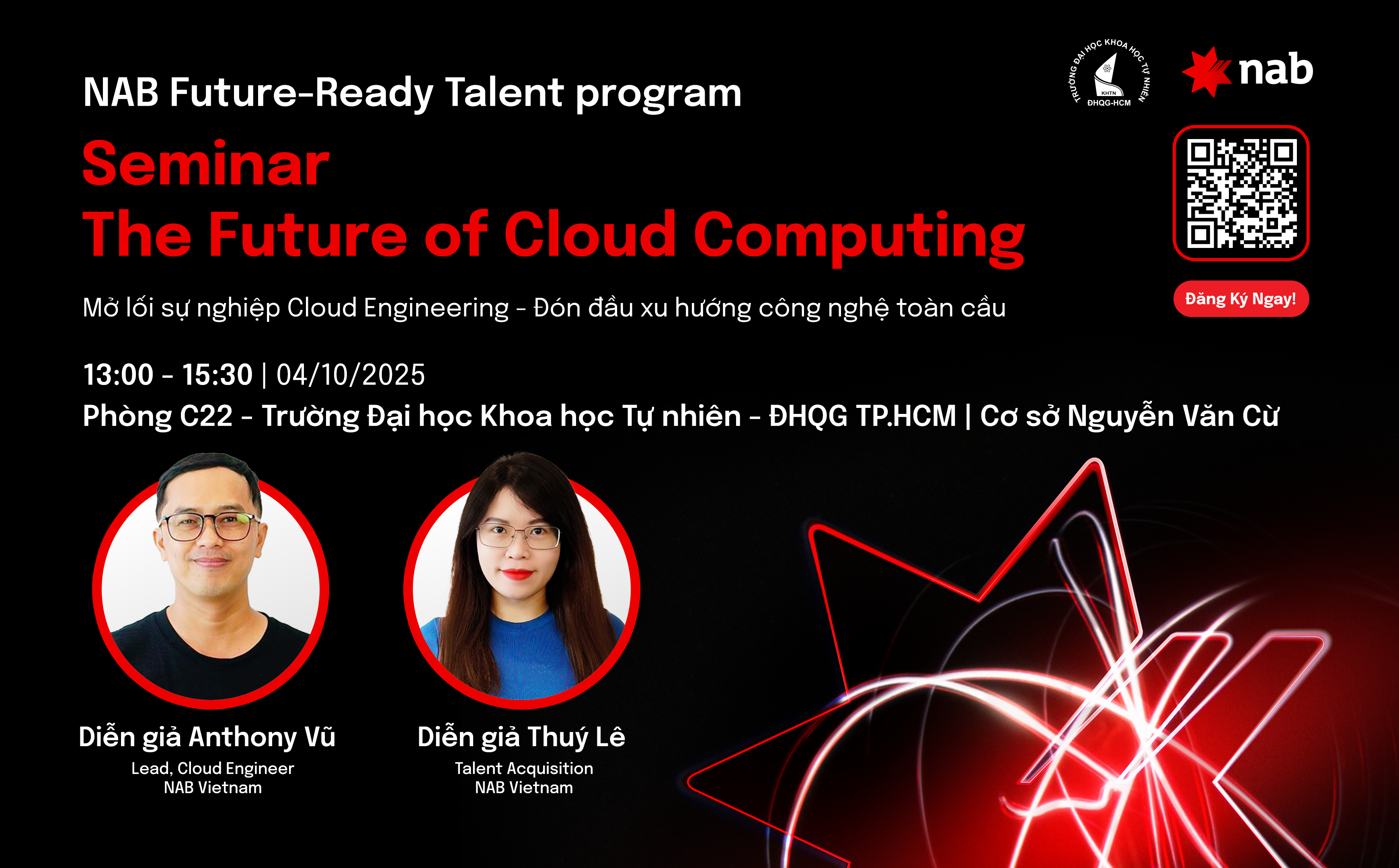 Seminar đặc biệt: "The Future Of Cloud Computing" nằm trong chuỗi NAB Future-Ready Talent Program - Seminar sẽ cùng bạn mở khóa toàn cảnh về Cloud và các lộ trình sự nghiệp trong ngành.