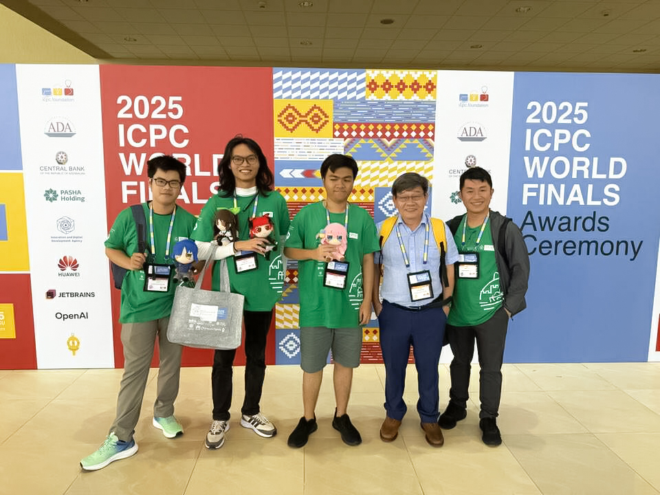 Đội tuyển HCMUS-AtCoder của Khoa Công nghệ thông tin, Trường Đại học Khoa học tự nhiên, ĐHQG-HCM đã xuất sắc giành hạng 32/139 tại ICPC World Finals 2025 ở Baku, Azerbaijan, diễn ra từ 31/8 đến 5/9/2025.