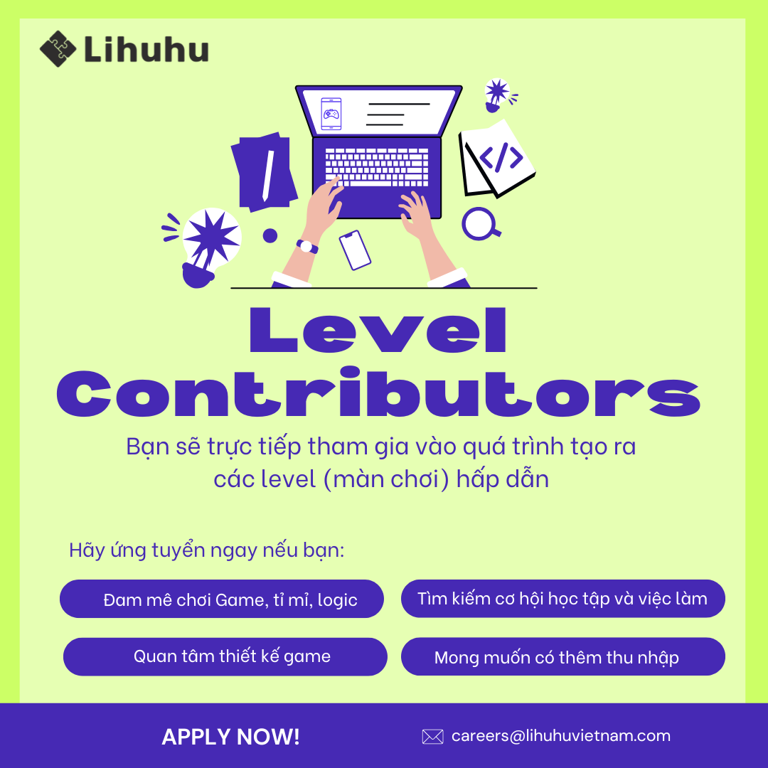 [Lihuhu Vietnam] Tuyển dụng vị trí Cộng tác viên xếp Level (Mobile games)