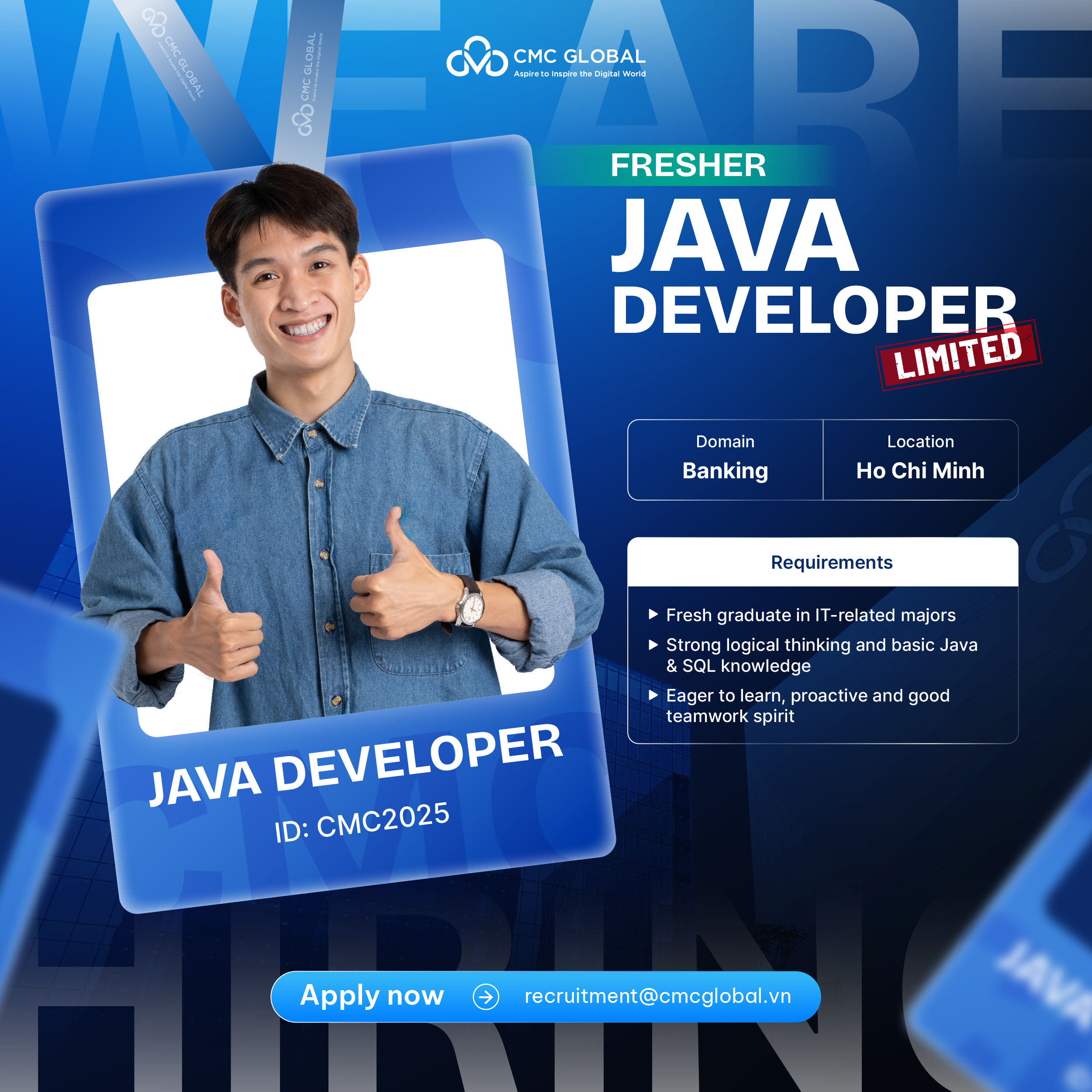 CMC Global is looking for Fresher Java Developers to join our Banking domain project – one of our key long-term client engagements.