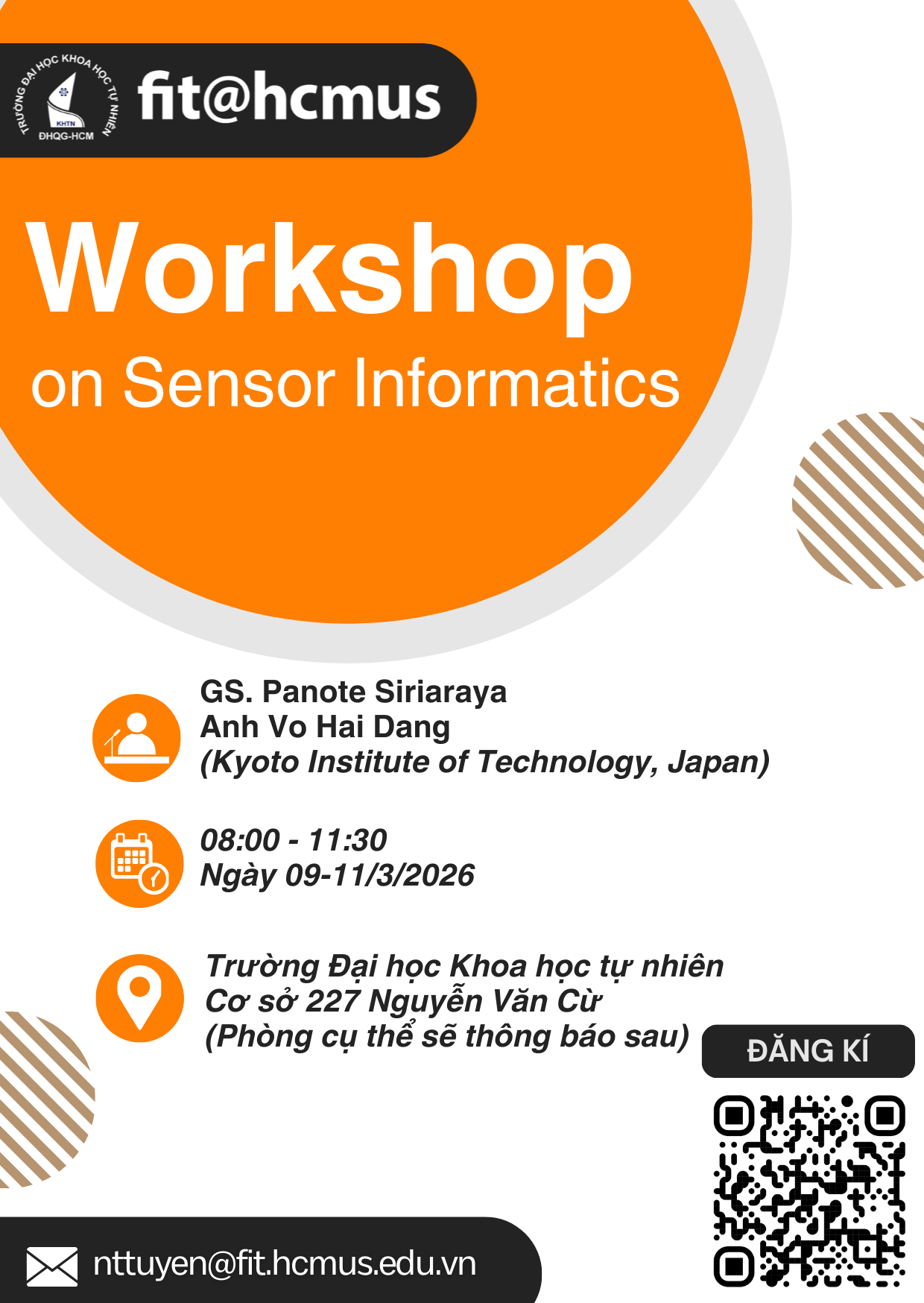 FIT.HCMUS thân mời Quý Thầy Cô và các bạn Học viên Cao học, Sinh viên tham gia Workshop on Sensor Informatics do GS. Panote Siriaraya và Anh Vo Hai Dang tại Kyoto Institute of Technology (KIT, Japan) trình bày với thông tin như sau: