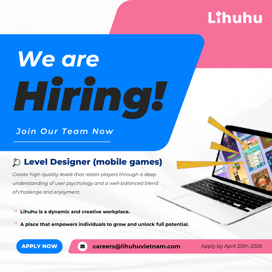 Lihuhu chuyên phát triển các sản phẩm game thuộc thể loại Casual và Puzzle trên thiết bị di động với hơn 60 sản phẩm game và hơn 250 triệu lượt tải. Chúng tôi không ngừng tham vọng tạo ra các sản phẩm games thành công phục vụ hàng triệu người chơi mỗi ngày trên toàn thế giới.